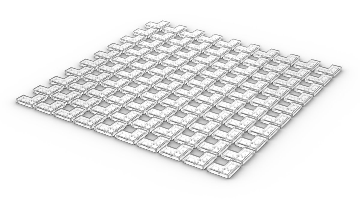 100 Stück Fliesen 2 x 2 corner tile Farbe trans clear white. Ein Stein hat ein Gewicht von 0,41 Gramm. Die Steine werden in einem stylischen Hängeblister verkauft.