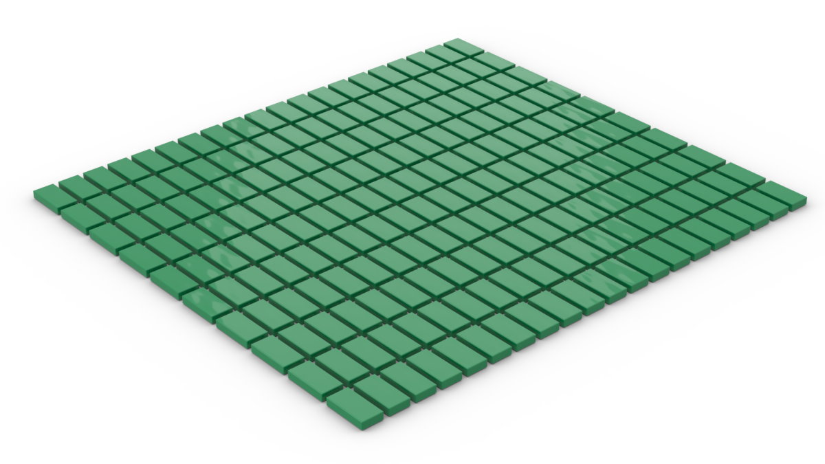 200 Stück Fliesen 1 x 2 tile Farbe grün. Ein Stein hat ein Gewicht von 0,265 Gramm. Die Steine werden in einem stylischen Hängeblister verkauft.
