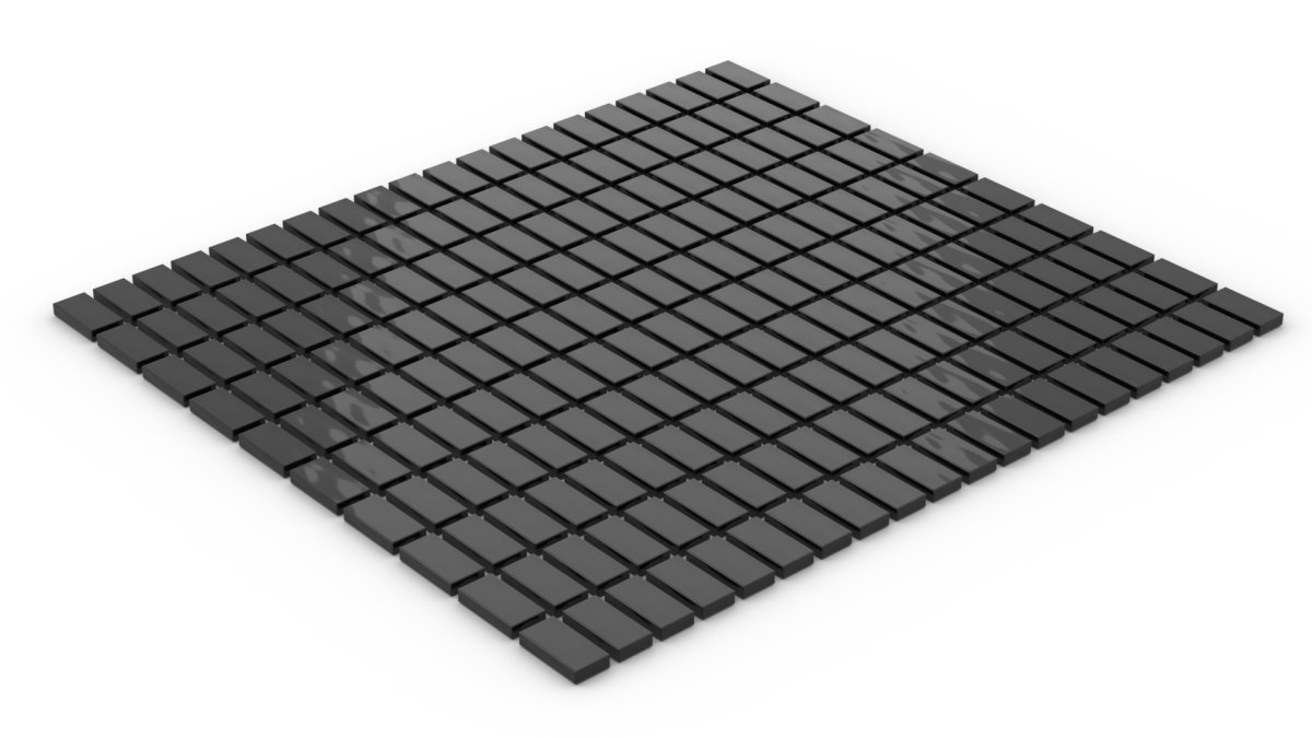 200 Stück Fliesen 1 x 2 tile Farbe schwarz. Ein Stein hat ein Gewicht von 0,265 Gramm. Die Steine werden in einem stylischen Hängeblister verkauft.