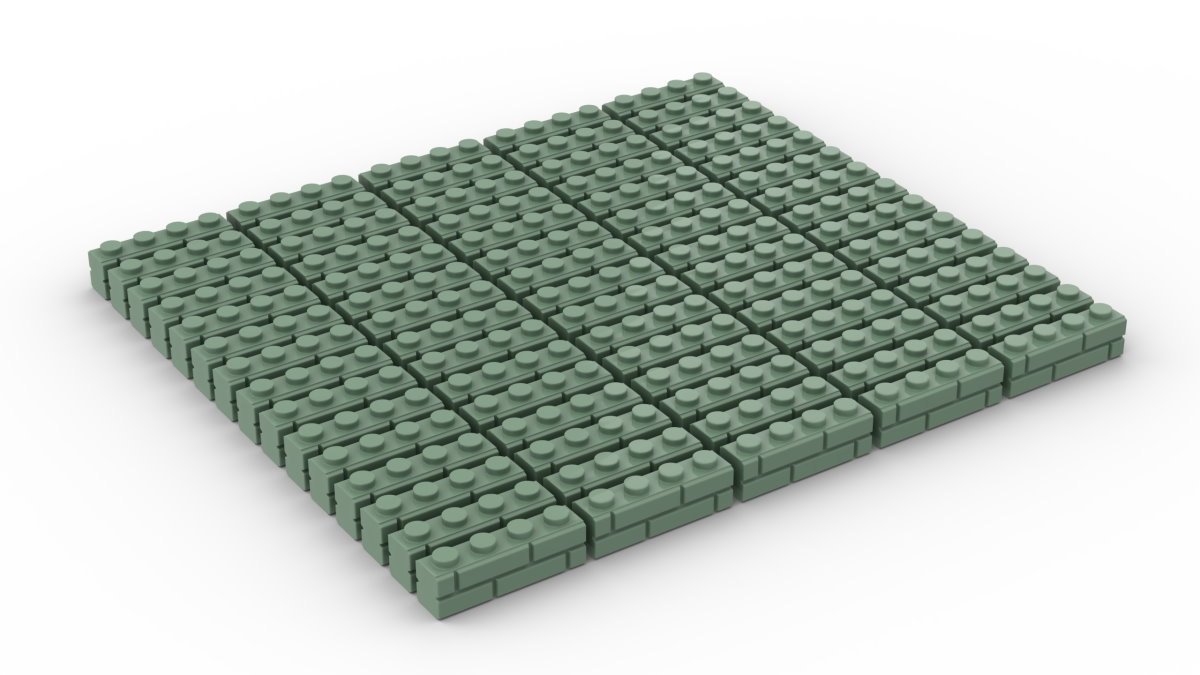 25 Stück Mauersteine 1 x 4 brick modified with Masonry Profile Farbe sand green. Ein Stein hat ein Gewicht von 1,44 Gramm. Die Steine werden in einem stylischen Hängeblister verkauft.