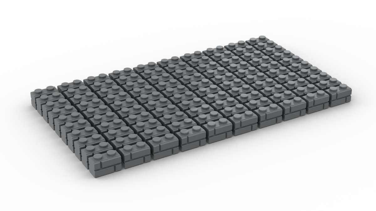 50 Stück Mauersteine 1 x 2 brick modified with Masonry Profile Farbe dark bluish grey. Ein Stein hat ein Gewicht von 0,75 Gramm. Die Steine werden in einem stylischen Hängeblister verkauft.