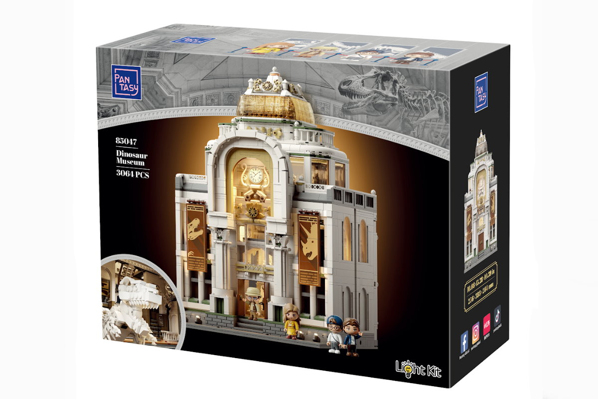 Mit dem Pantasy 85047 Dinosaurier Museum entsteht ein beeindruckendes Klemmbaustein-Modell eines naturhistorischen Museums, das ganz im Zeichen der faszinierenden Welt der Dinosaurier steht. Das Gebäude ist detailreich gestaltet und erinnert an klassische Museumsarchitektur mit großen Eingangsbereichen, dekorativen Fassaden und zahlreichen Ausstellungselementen. Schon von außen vermittelt das Modell den Eindruck eines echten Museums, das Besucher in die Urzeit entführt. Im Inneren erwarten dich verschiedene Ausstellungsbereiche mit Dinosaurier-Skeletten, wissenschaftlichen Exponaten und kleinen Details, die das Modell besonders lebendig wirken lassen.