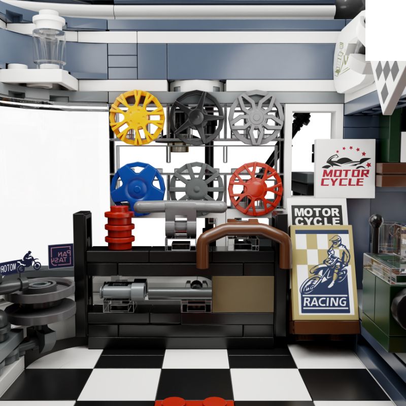 Dank modulierbarer Gebäudeteile, beweglicher Türen und detailreicher Ausstattung lässt sich jede Szene individuell inszenieren. Ein Must-have für alle, die Architekturmodellbau, Nostalgie und Motorradlifestyle lieben.