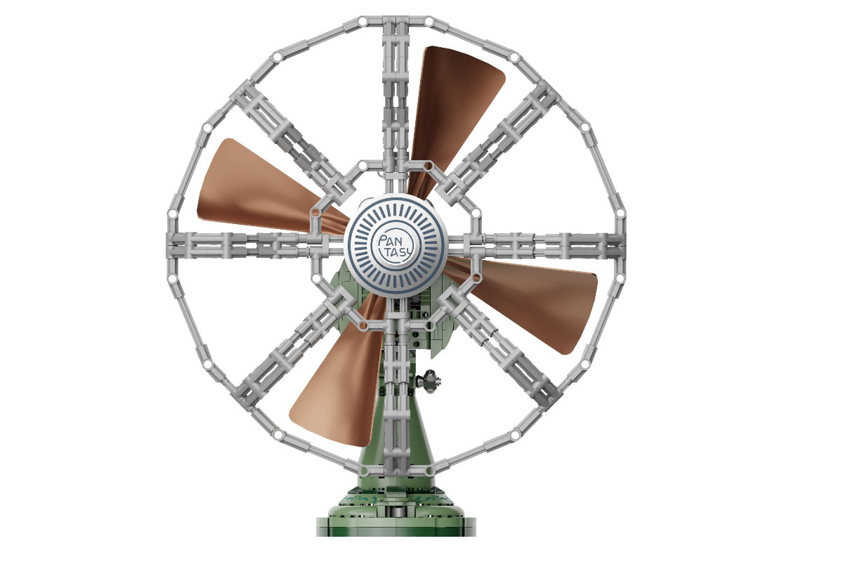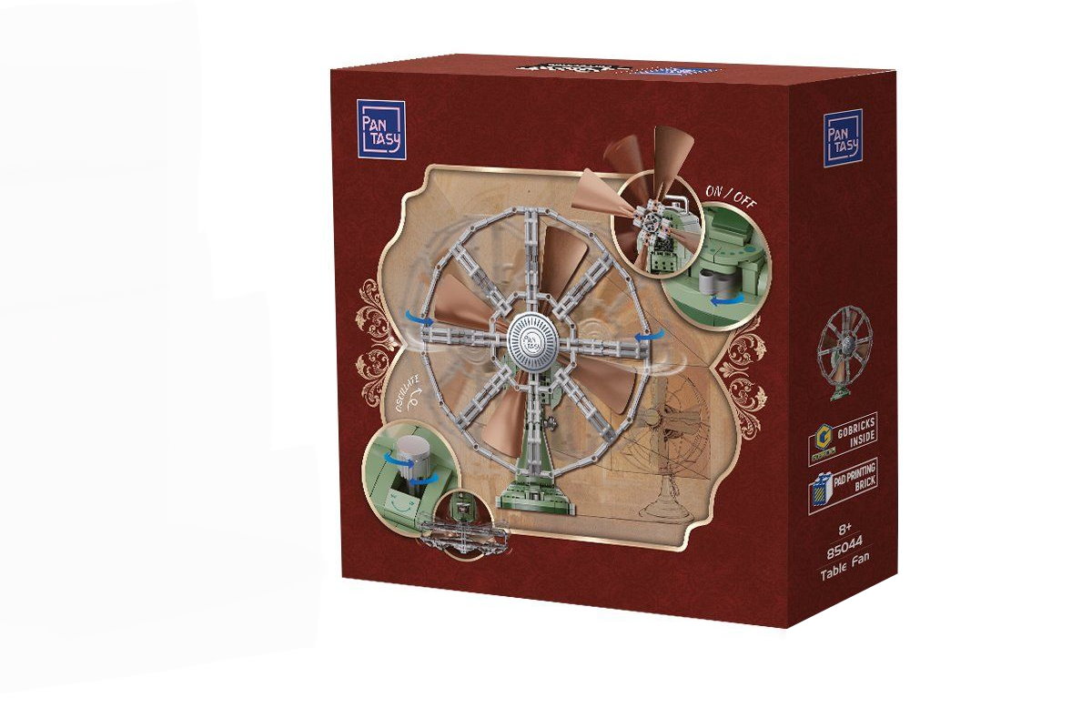 Ein besonderes Highlight ist die integrierte mechanische Funktion: Durch eine Kurbel- bzw. Drehbewegung lassen sich die Lüfterblätter in Bewegung versetzen, wodurch der Ventilator eine realistische Wirkung erhält. Die Kombination aus dekorativem Design und beweglicher Technik sorgt für ein spannendes Bauerlebnis. Nach dem Aufbau eignet sich das Modell perfekt als Hingucker auf dem Schreibtisch, im Regal oder in einer Vitrine und passt ideal zu anderen Sets der Pantasy Retro-Serie.