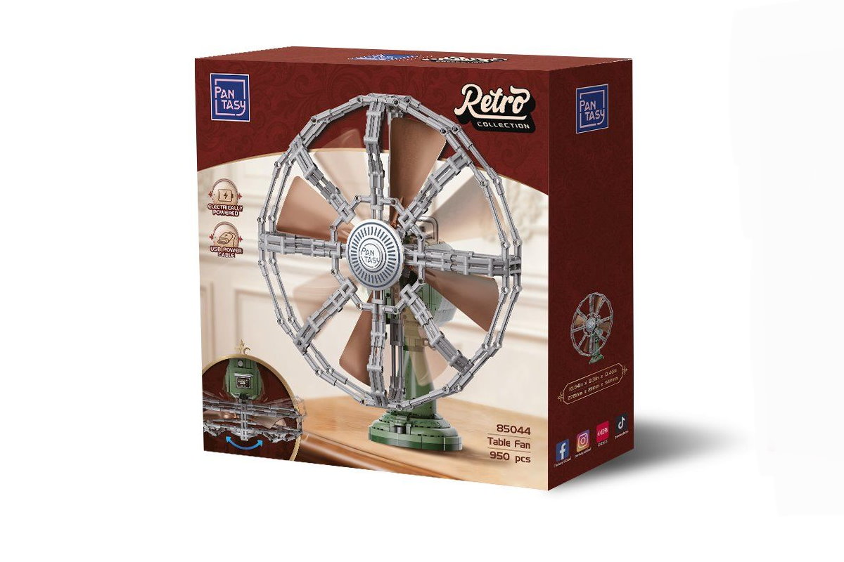 Der Pantasy 85044 Retro Tischventilator ist ein stilvolles Klemmbaustein-Modell, das das Design klassischer Metallventilatoren vergangener Jahrzehnte detailreich nachbildet. Mit seinem nostalgischen Look, den charakteristischen Lüfterblättern und dem stabilen Standfuß erinnert das Modell an traditionelle Tischventilatoren aus Werkstätten und Büros der Mitte des 20. Jahrhunderts. Dadurch wird das Set zu einem außergewöhnlichen Display-Modell für Sammler, Technikfans und Liebhaber von Retro-Design.