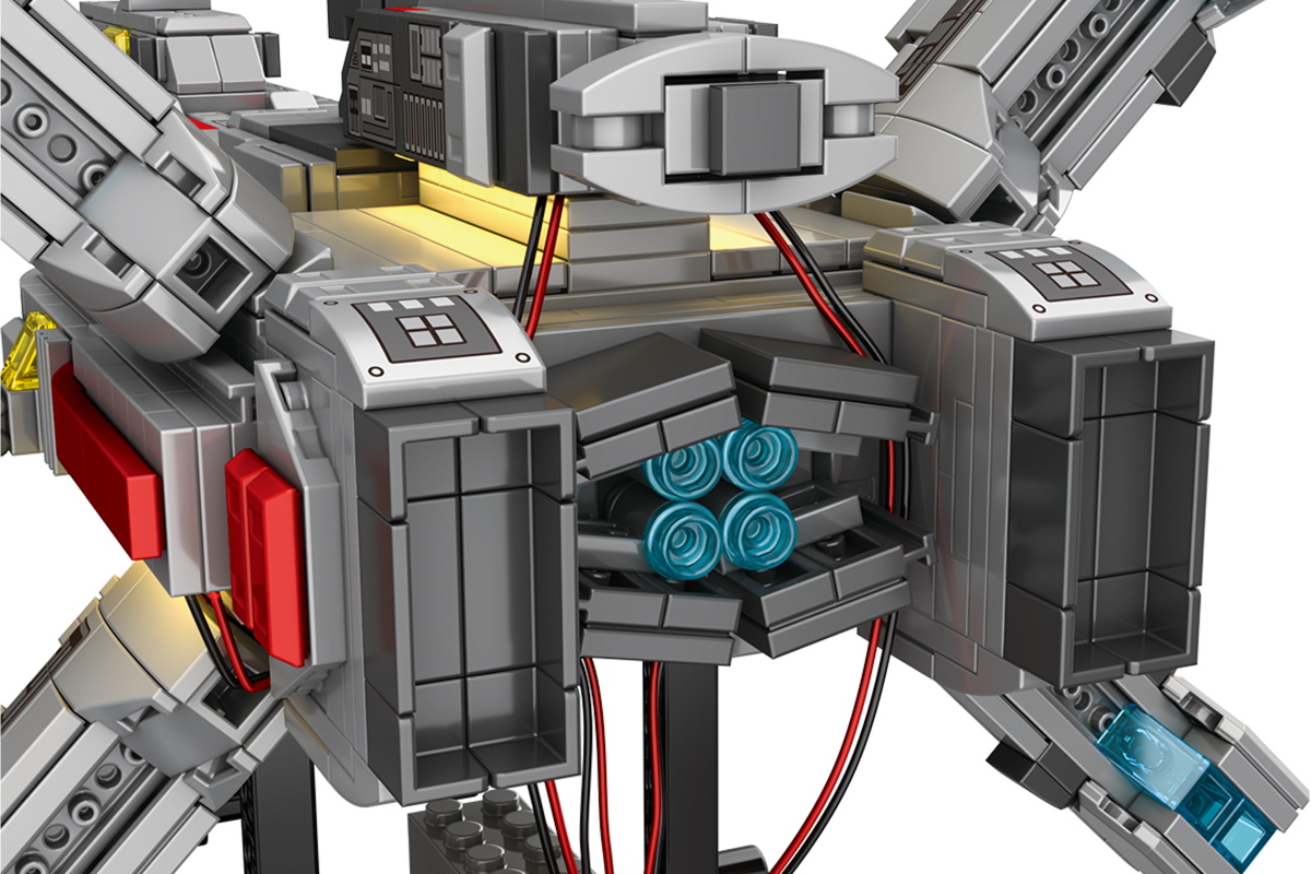 Die Weltraum Sets von Reobrix sind keiner bestimmten Serie nachempfunden, lassen sich aber bestimmt hervorragend kombinieren. Die Raumschiffe stehen auf einem Standfuß, und haben eine tolle LED-Beleuchtung inklusive.