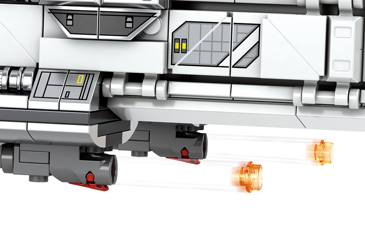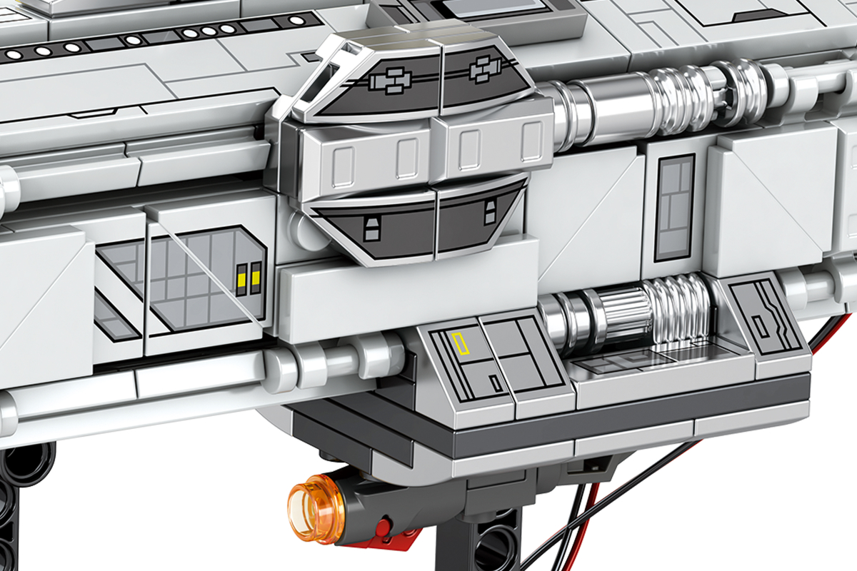 Die Weltraum Sets von Reobrix sind keiner bestimmten Serie nachempfunden, lassen sich aber bestimmt hervorragend kombinieren. Die Raumschiffe stehen auf einem Standfuß, und haben eine tolle LED-Beleuchtung inklusive.