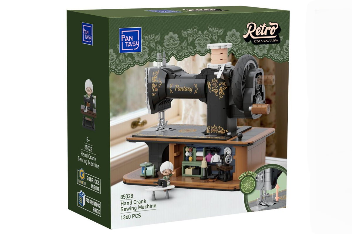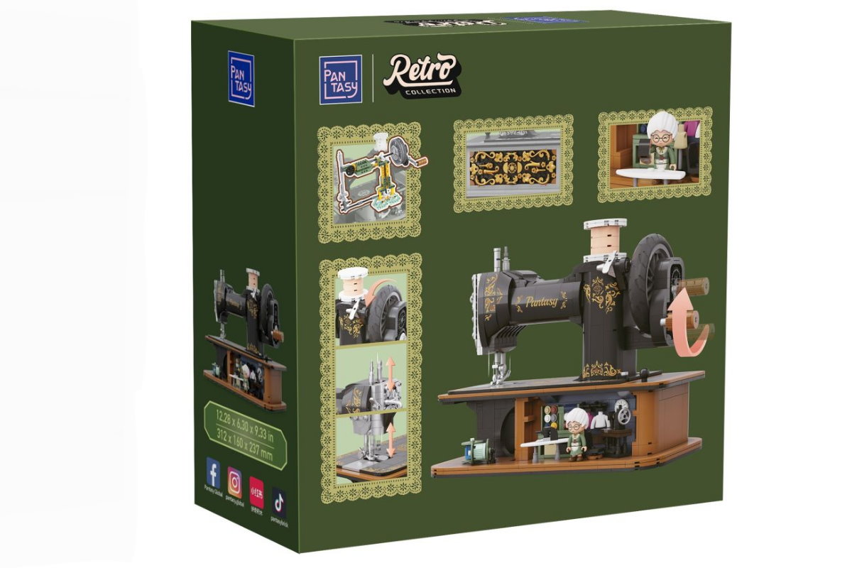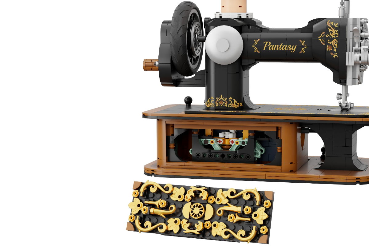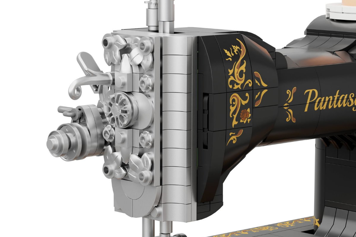 Mit dem Pantasy Set 85028 entsteht eine detailreiche Nachbildung einer klassischen Handkurbel-Nähmaschine aus der Zeit der frühen Industrialisierung. Das Modell verbindet nostalgisches Design mit cleverer Klemmbaustein-Technik und wird so zu einem echten Blickfang für Regal, Büro oder Vitrine. Die elegante schwarze Farbgebung mit goldenen Verzierungen erinnert an historische Maschinen aus Schneiderwerkstätten vergangener Zeiten und verleiht dem Modell einen authentischen Vintage-Charakter.