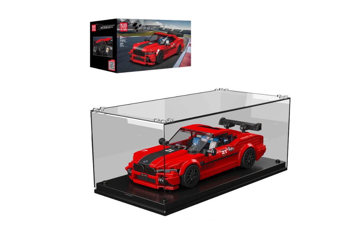 Sportwagen M8 aus Klemmbausteinen in rot mit Acryl Vitrine