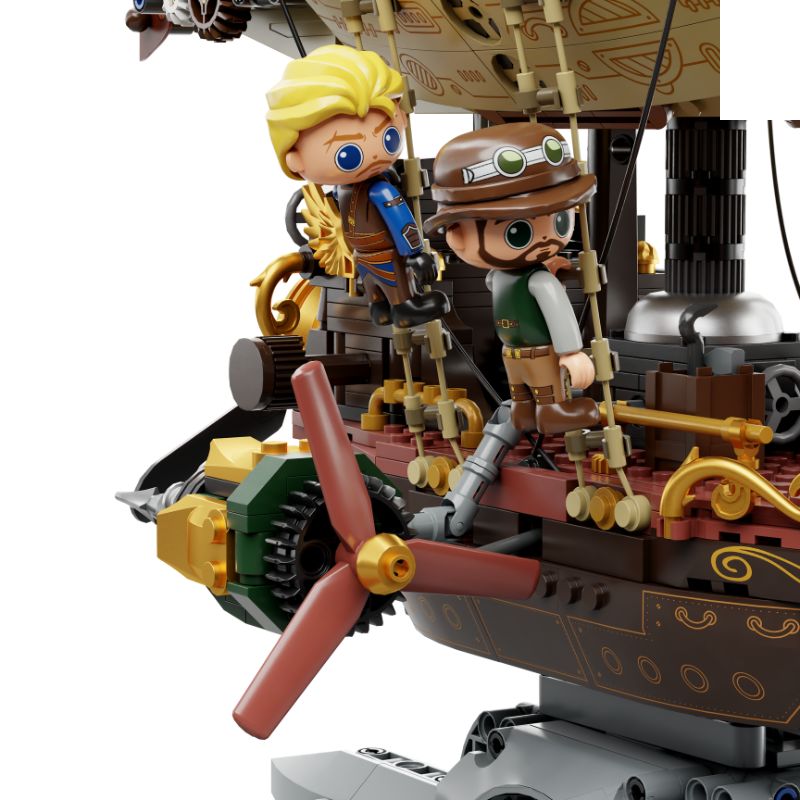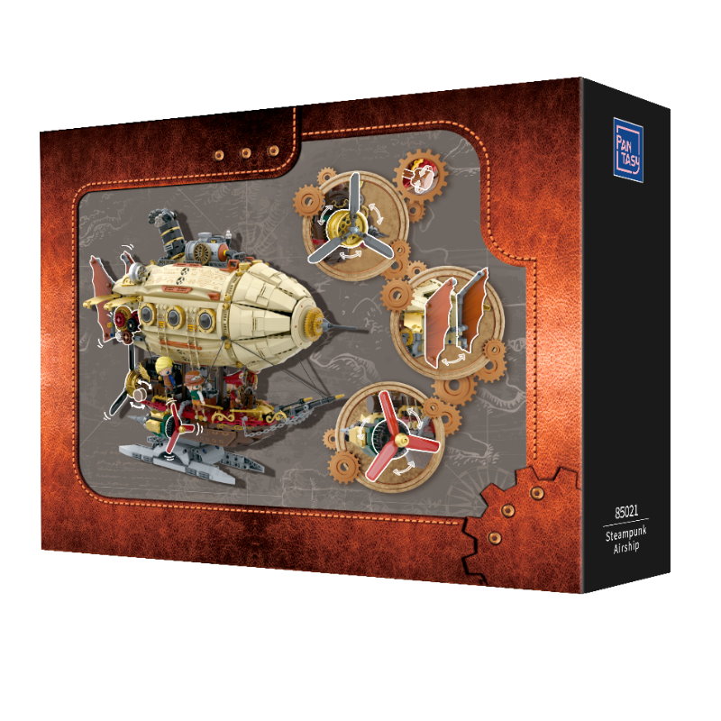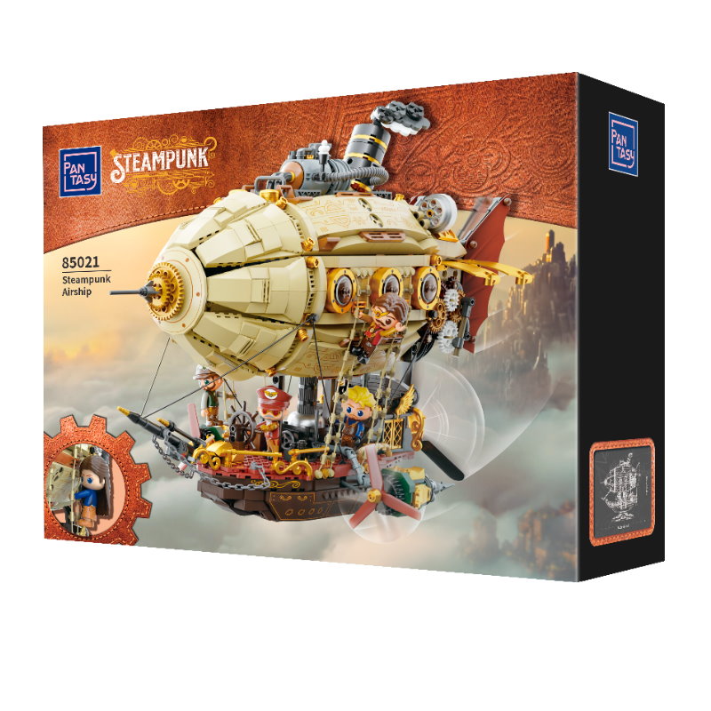 Erlebe die Magie des Steampunk mit dem Pantasy Steampunk Airship 85021 – ein mechanisch animiertes Bauprojekt, das Geschichte schreibt. Das Modell fasziniert durch seinen Mix aus nostalgischer Kupferästhetik, lebendigen Zahnrädern und cleverem Technikdesign. Aufgebaut ist das Set 32 cm x 38 cm x 34 cm groß und ein echter Blickfang.