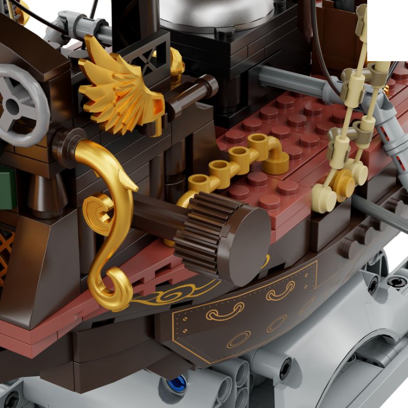 Mit 1949 Teilen und fünf liebevoll gestalteten Minifiguren bietet dieses Set ein intensives Bauerlebnis und wird zum imposanten Blickfang im Regal. Der mechanische Antrieb bringt Propeller und Ruder in Bewegung – mechanische Finesse, die begeistert!