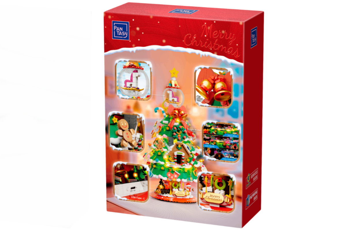 Der Pantasy-Bausatz 86004 bringt einen detailreichen Weihnachtsbaum aus Klemmbausteinen in die Vitrine oder auf den Tisch. Das Modell besteht aus über tausend Teilen, erreicht eine stattliche Höhe von rund 39 cm und wird durch ein integriertes LED-Band in Szene gesetzt. Drei wählbare Lichtprogramme sorgen je nach Stimmung für warme, festliche oder farbenfrohe Beleuchtung. Viele kleine Bauelemente wie eine weihnachtliche Spitze, ein Mini-Lebkuchenhaus im Inneren und klassische Dekodetails unterstreichen den saisonalen Charakter.